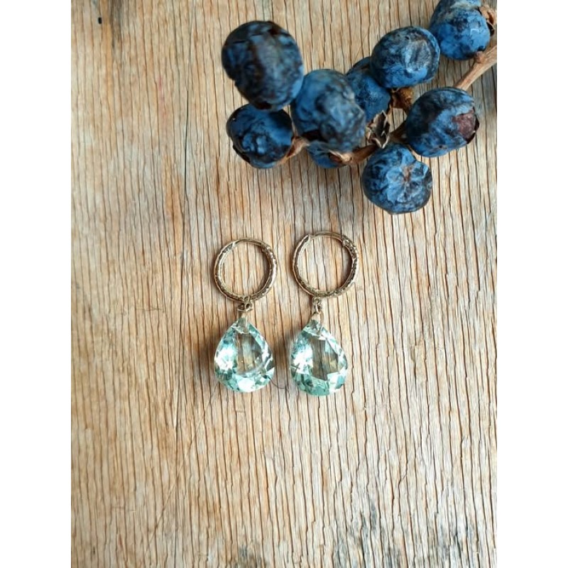 5 Octobre "One of a kind" vienetinio tiražo 14k 585 aukso auskarai su žaliais ametistais, auksas 585.
