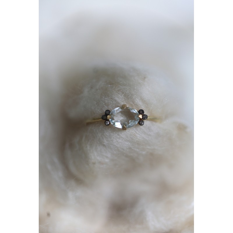 Rankų darbo 14k aukso žiedas su akvamarinu 0,63ct ir deimantais 0,08ct, auksas 585.
