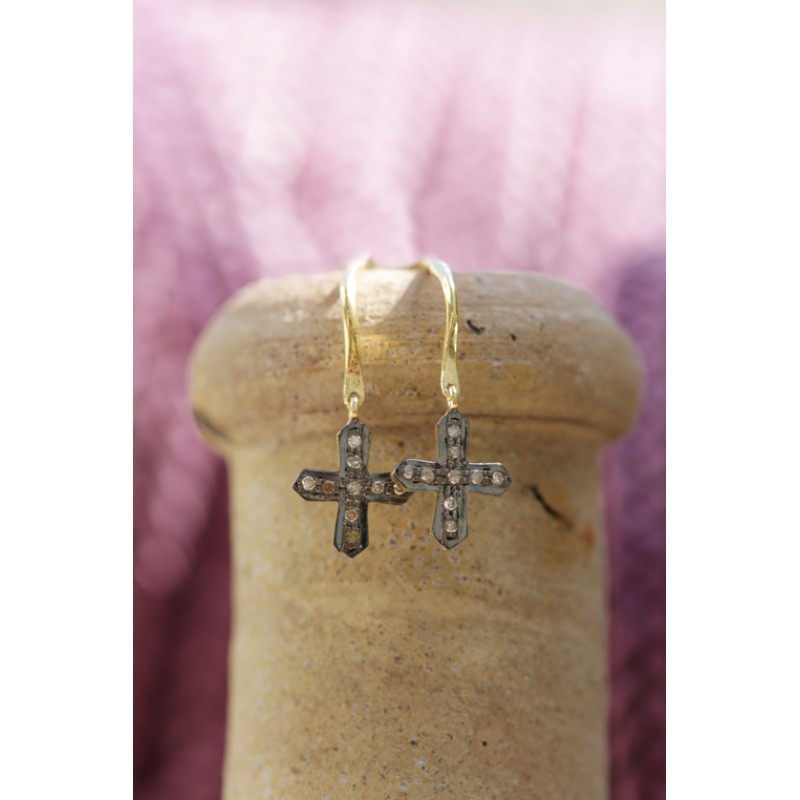 Rankų darbo auskarai su deimantais 0,13ct, sidabras 925, dengtas 24 karatų auksu.