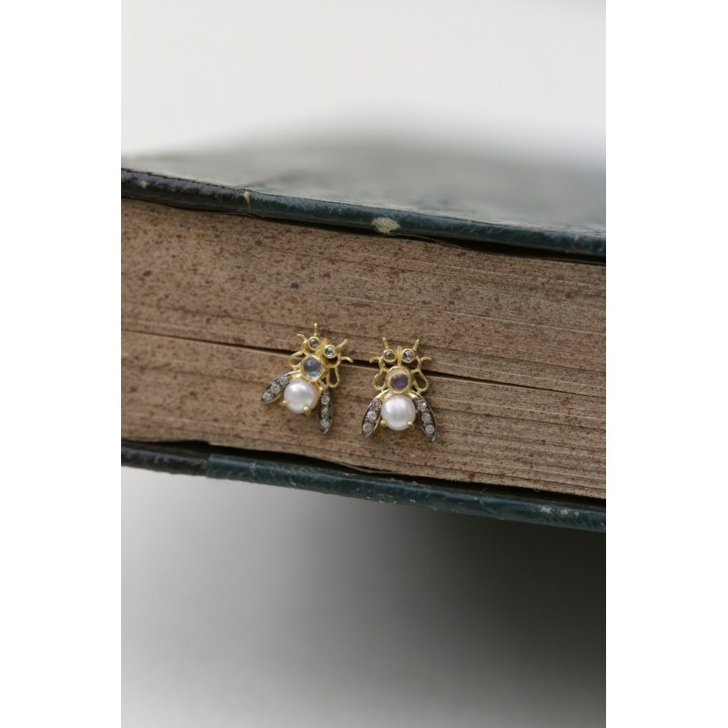 5 Octobre sidabro auskarai su deimantais, perlais ir mėnulio akmeniu