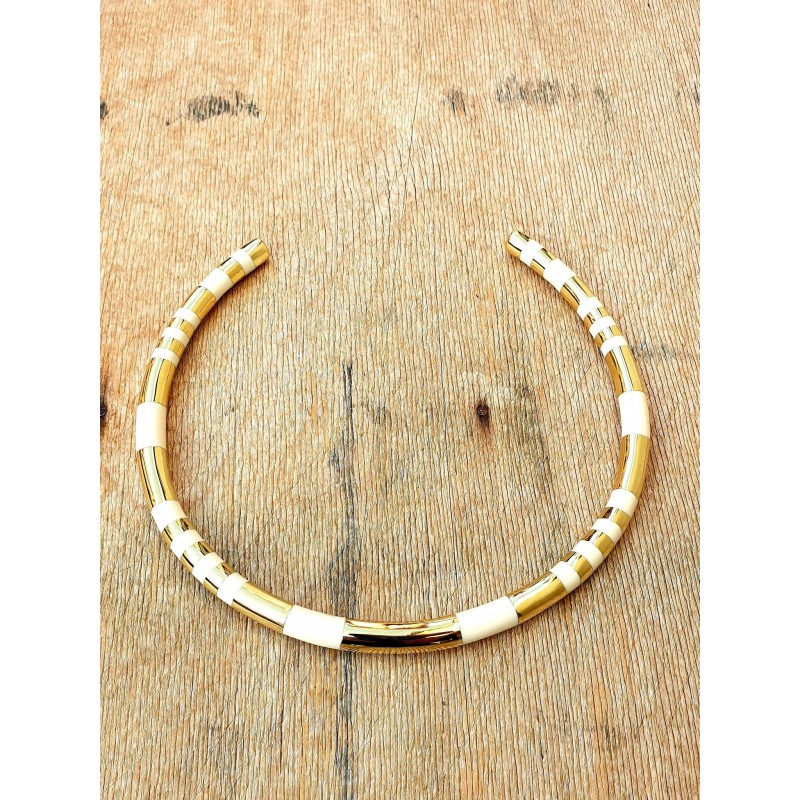 Rankų darbo kaklo papuošalas, žalvaris dengtas 24 karatų auksu.