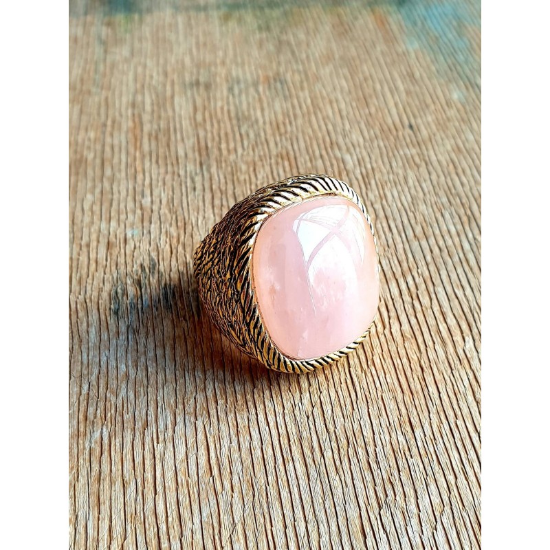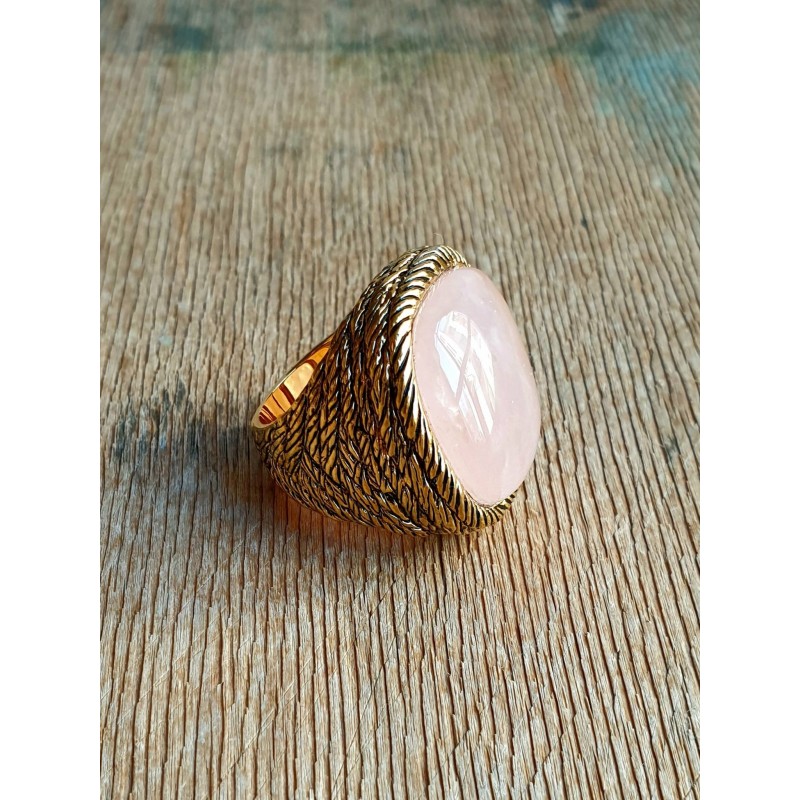 Rankų darbo žiedas su kvarcu, žalvaris dengtas 24 karatų auksu.