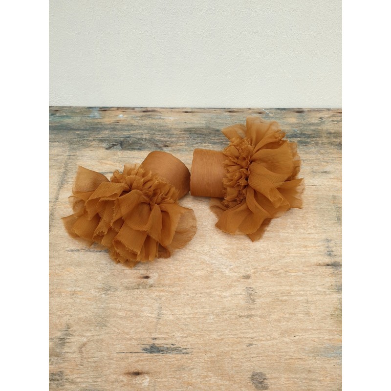 Rankų darbo, šilko šifono rankogaliai, užsegami spaudėmis.