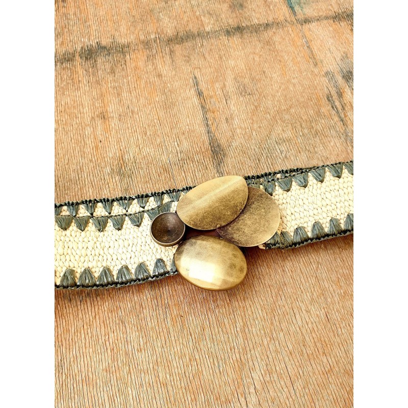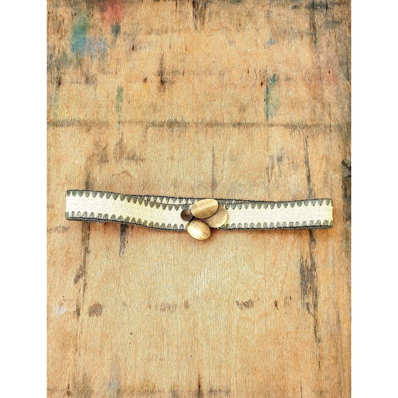 Rankų darbo diržas iš elastinės tekstilės juostos su metaline sagtimi.