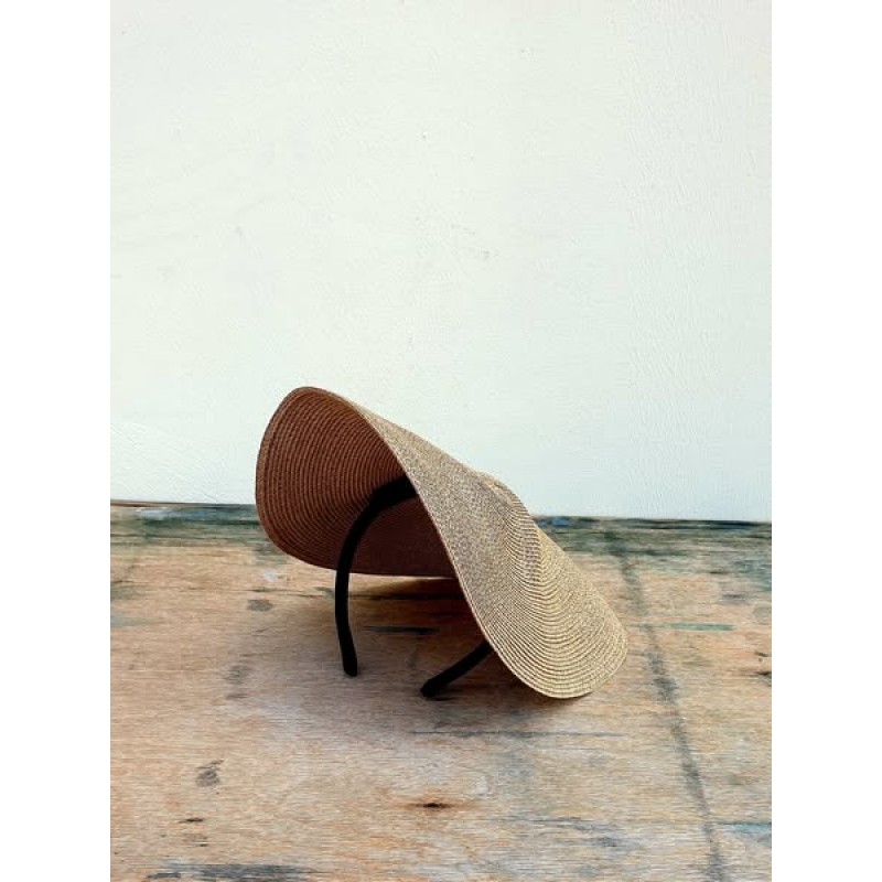 Rankų darbo vasarinė šiaudinė skrybėlė-lankelis, pagaminta Italijoje.