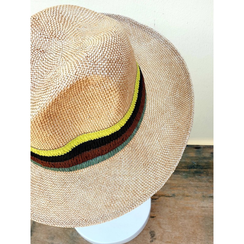Rankų darbo vasarinė skrybėlė su dekoru, pagaminta Italijoje.