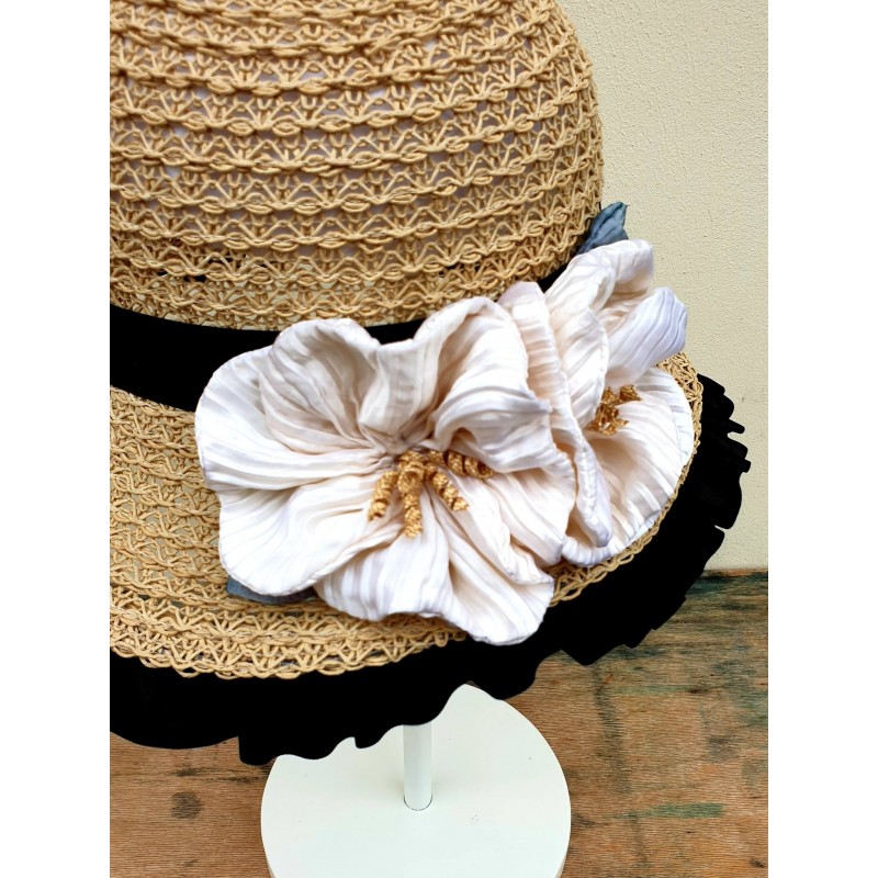 Grevi rankų darbo vasarinė šiaudinė skrybėlė, pagaminta Italijoje.