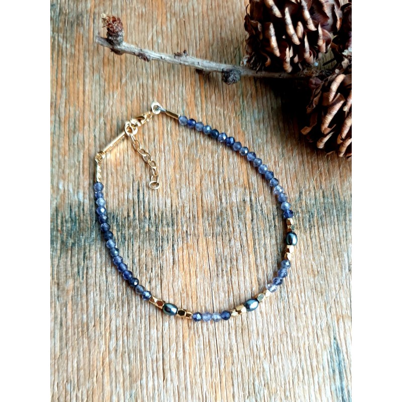 Rankų darbo apyrankė su jolitais ir perlu, žalvaris dengtas 24 karatų auksu.