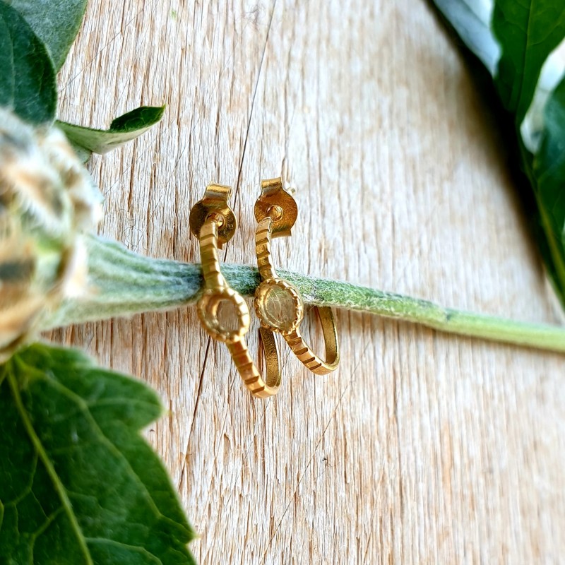 Rankų darbo auskarai, sidabras dengtas 24 karatų auksu.