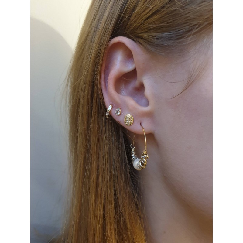Rankų darbo auskarai su perlais, žalvaris dengtas 24 karatų auksu.