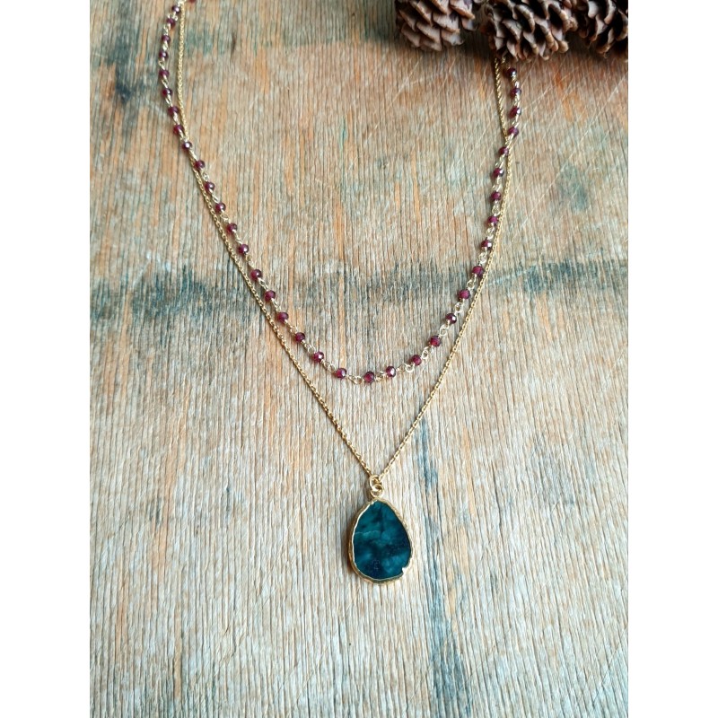 Hanka IN ilgas kaklo papuošalas su granatu ir smaragdu