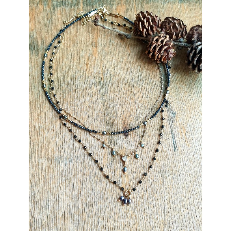 Hanka IN kaklo papuošalas "Choker" su juoda špinele ir perlais.