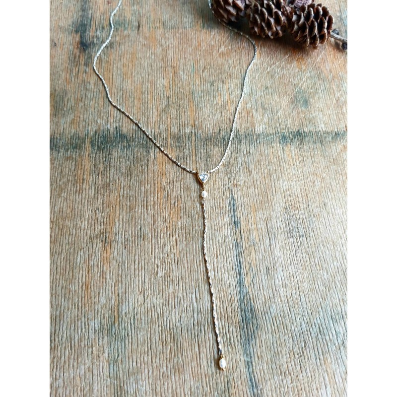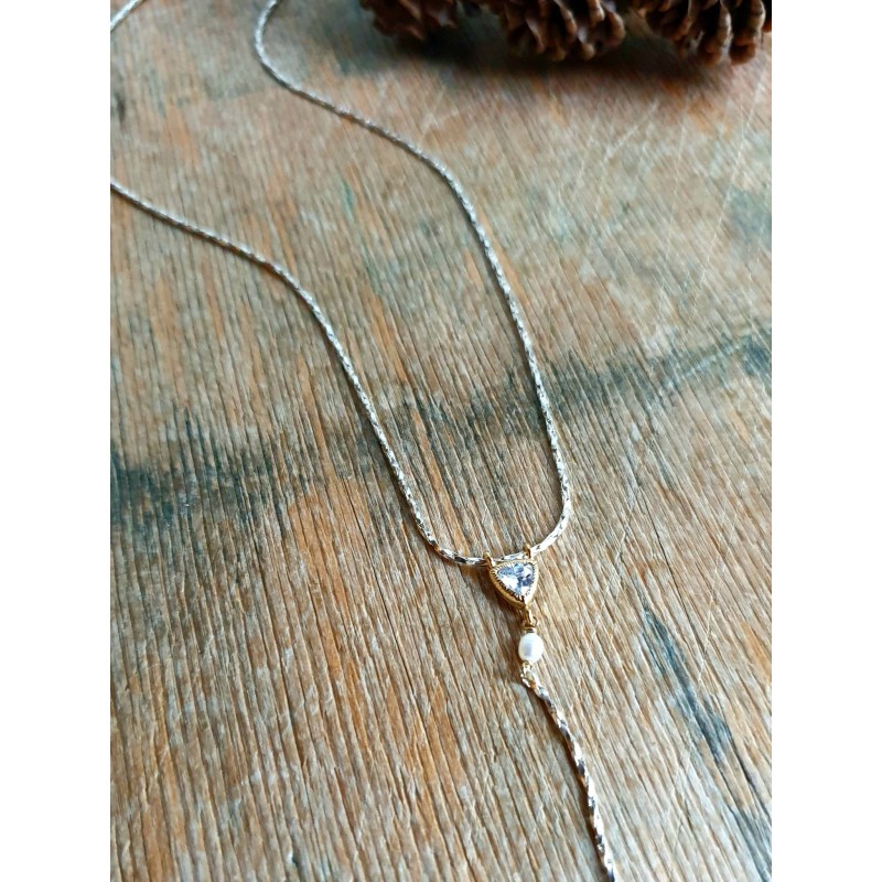 Rankų darbo kaklo papuošalas su perlais, žalvaris dengtas 24 karatų auksu ir sidabru.