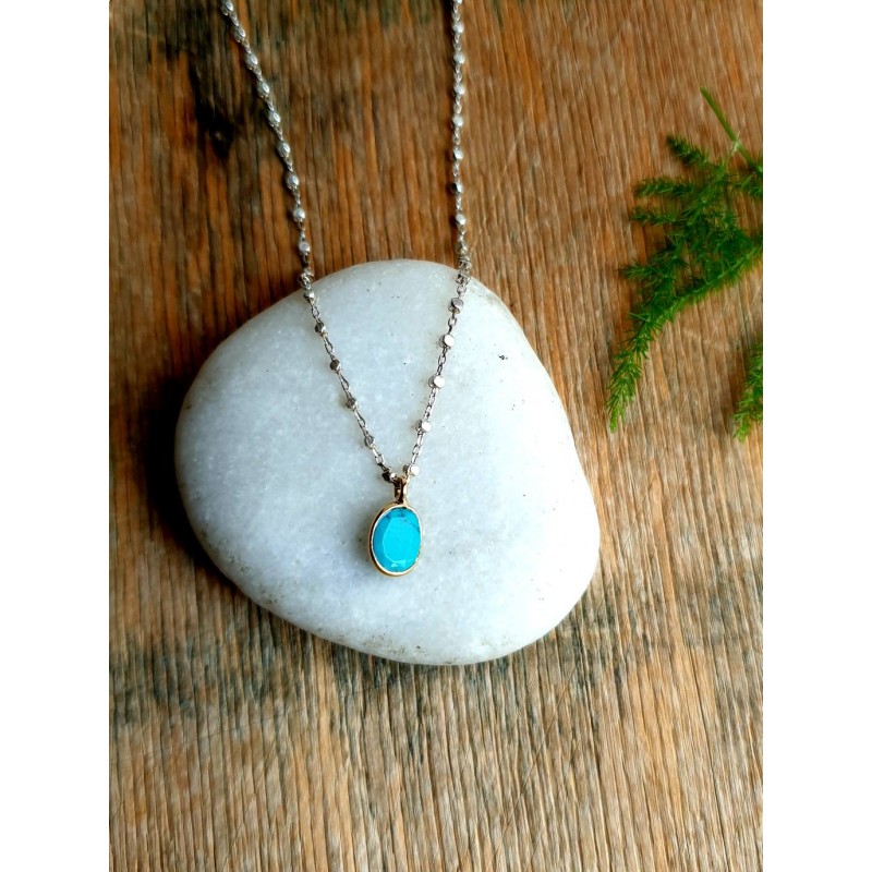 Rankų darbo kaklo papuošalas su turkiu, žalvaris dengtas 24 karatų auksu.