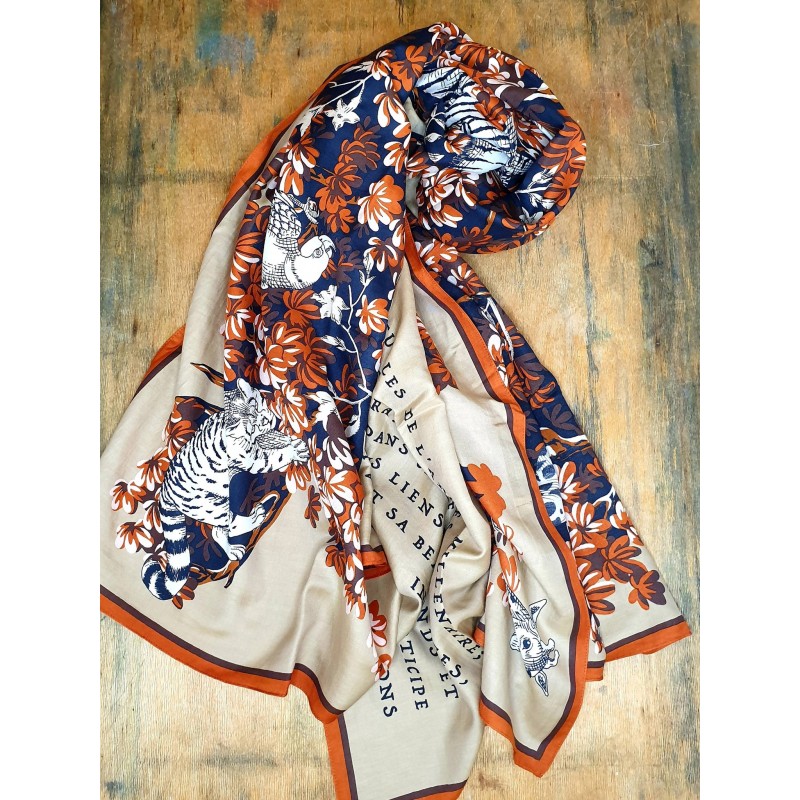 Inoui Editions šilko ir medvilnės skara BESTIAIRE POWDER