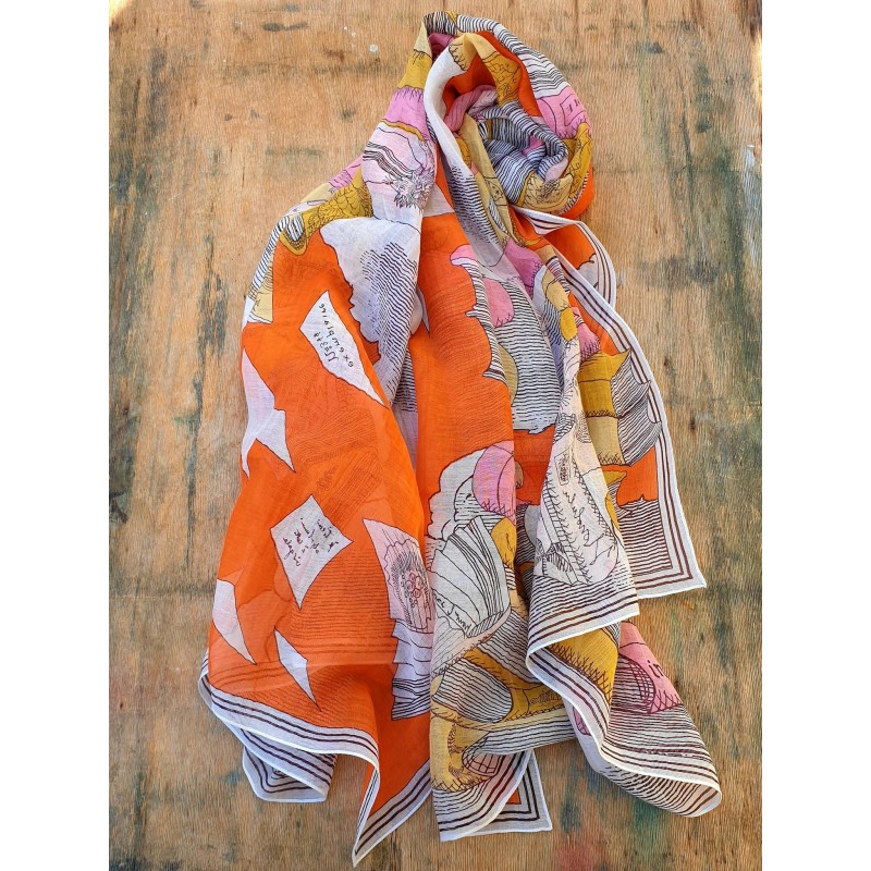 Inoui Editions šilko ir medvilnės skaraRankomis marginta plonytė skara. Sudėtis: 20% šilkas, 80% medvilnėDydis: 100 x190cmPriežiūra: sausas valymasSukurta: Prancūzijoje