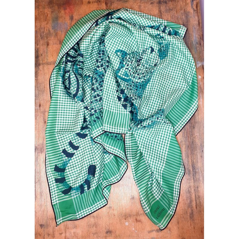 Inoui Editions šilko ir medvilnės skaraRankomis marginta plonytė skara. Sudėtis: 37% šilkas,63% medvilnėDydis: 100 x100cmPriežiūra: sausas valymasSukurta: Prancūzijoje