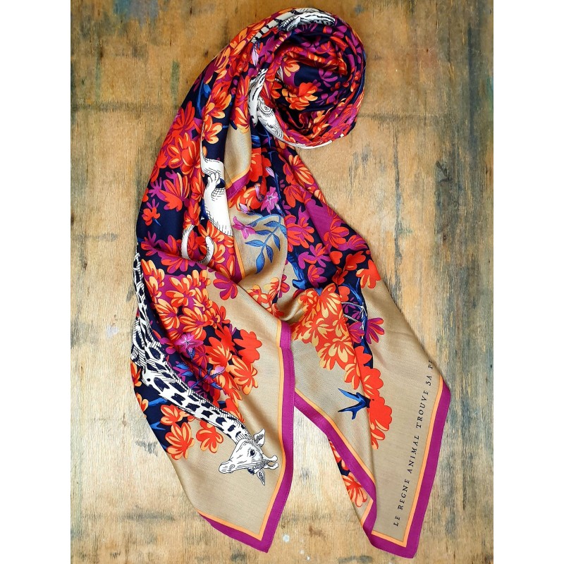 Inoui Editions šilko ir modalo skara BESTIAIRE FUCHSIA