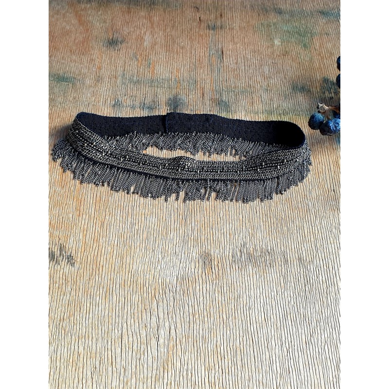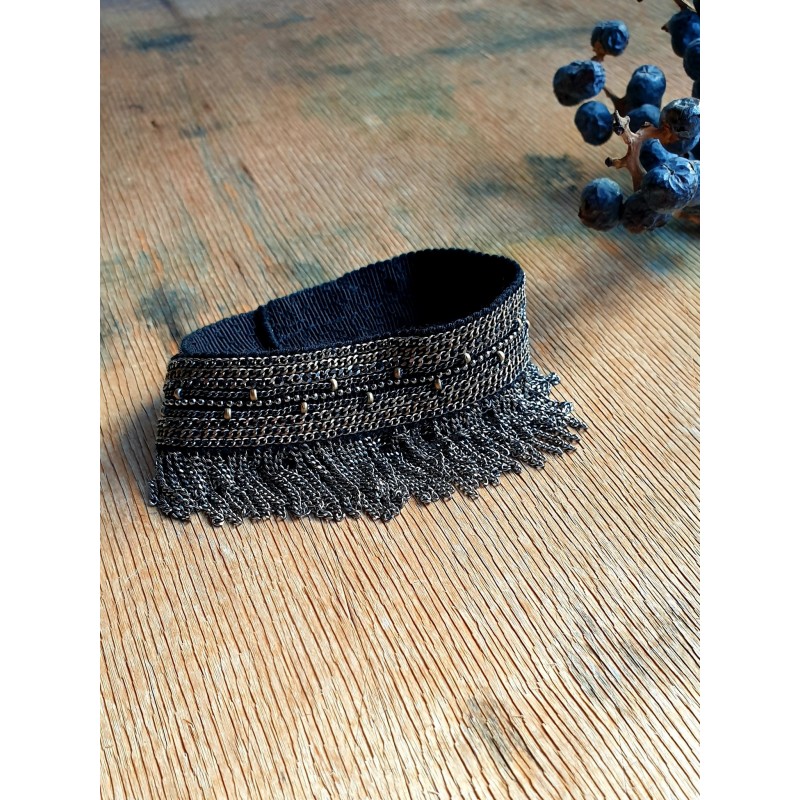 Rankų darbo apyrankė-kaklo papuošalas pagaminta iš siuvinėto grandinėlėmis poliamido, su reguliuojamu užsegimu su spaudėmis. Svoris: 32g Ilgis: 35cm