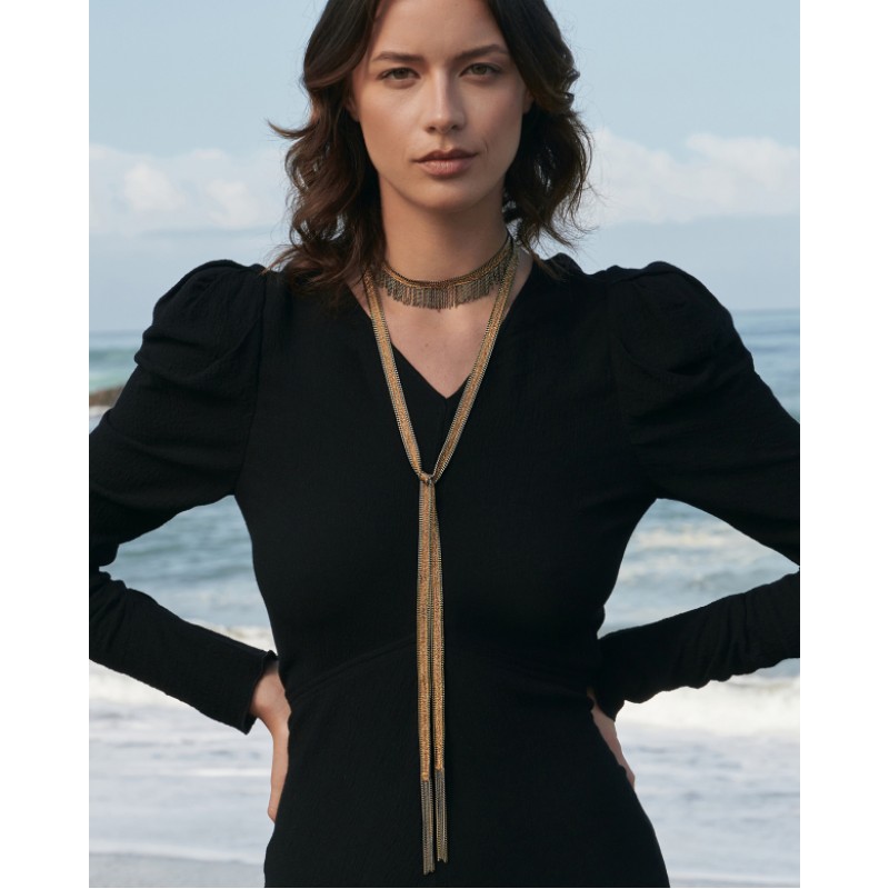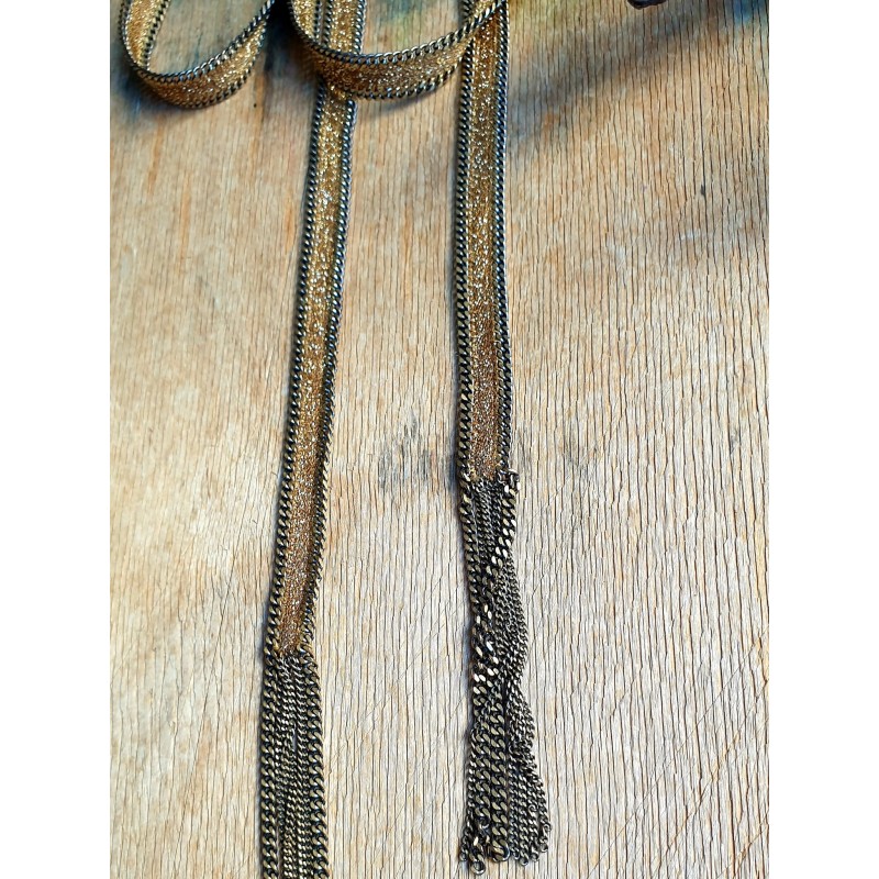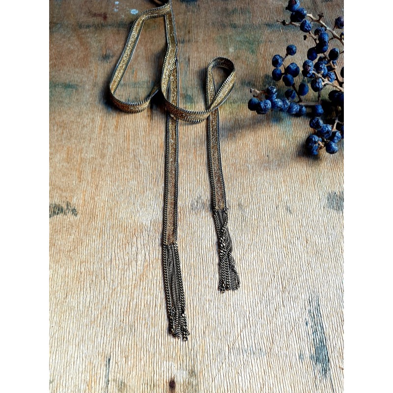 Rankų darbo bronzinis kaklo papuošalas supintas iš bronzos grandinėlių.