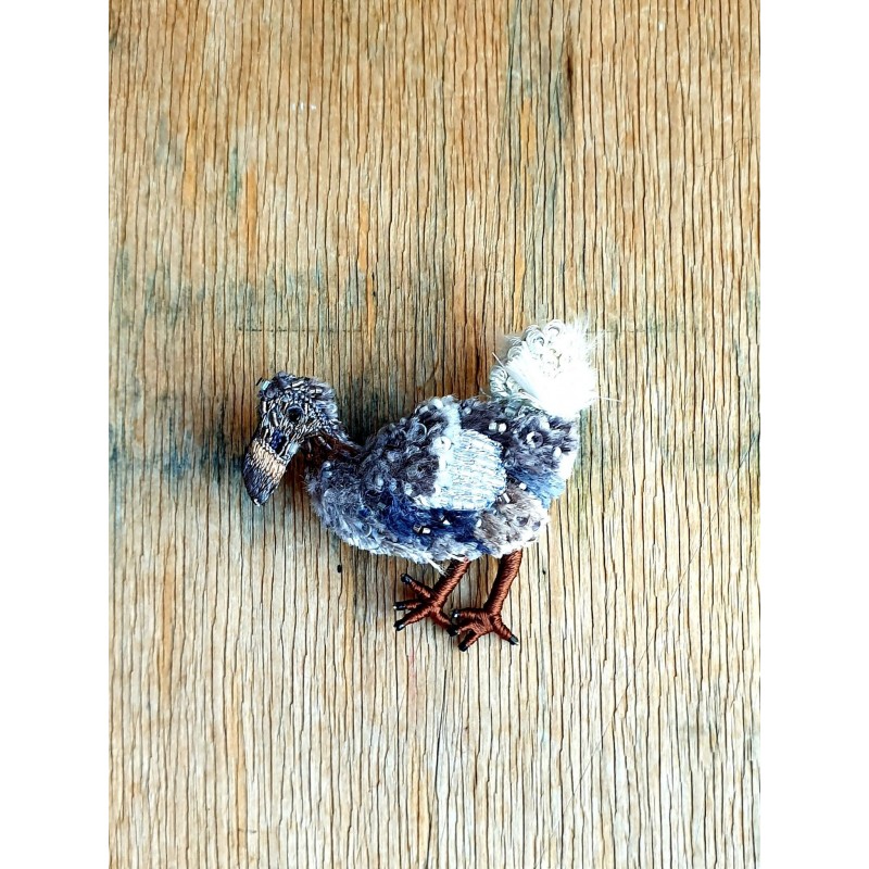 Rankų darbo siūlais ir karoliukais siuvinėta sagė.