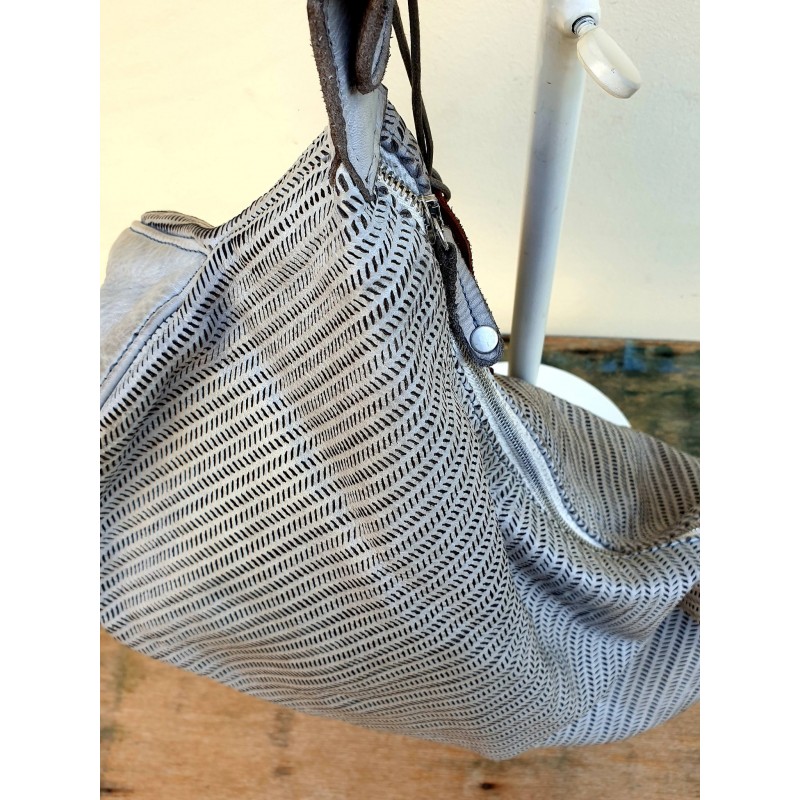 Rankinės oda yra tarsi audinys dažyta ir skalbta su specialiais enzimais bei rankomis tepama, bei puškiama - taip išgaunami netikėti spalvų perėjimai, neužgožiant natūralios odos faktūros. Rankinės bei kiti aksesuarai apdirbti ir dažyti šiuo išskirtiniu būdu yra ypač lengvi ir patogūs, bei svarbiausia – jų vienodų niekad nebūna, kiekvienas yra skirtingas. Rankinė viduje turi užsegamą kišenę užtrauktuku. Rankinė užsegama užtrauktuku, taip pat turi ilgą rankeną.