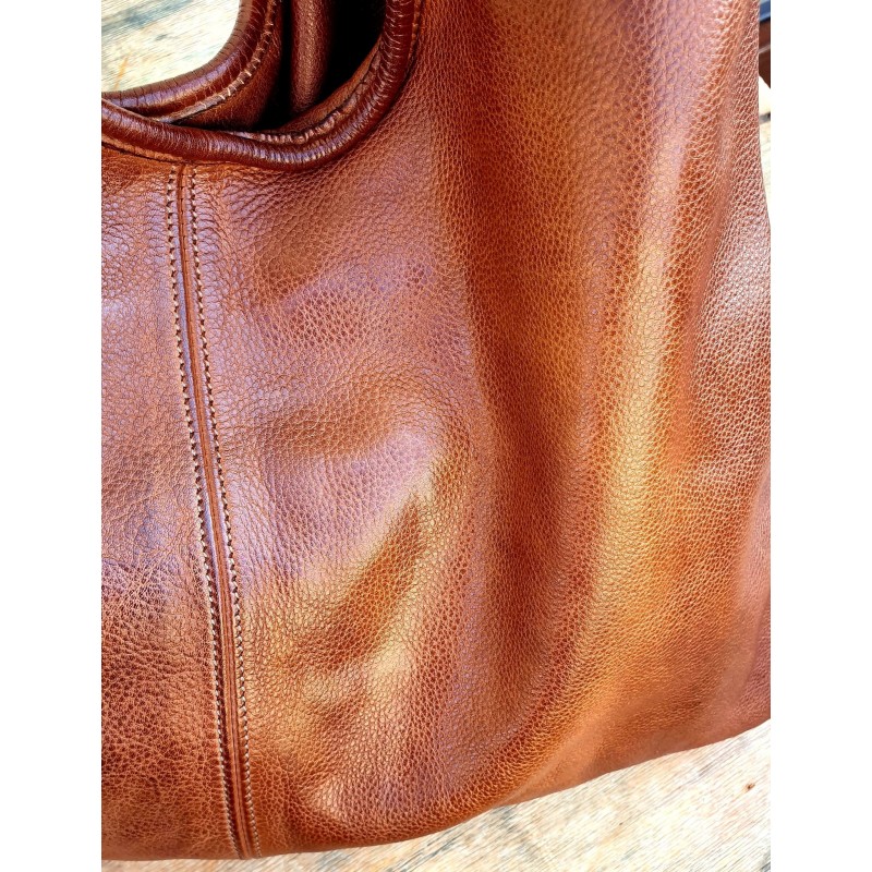 Rankinės oda yra tarsi audinys dažyta ir skalbta su specialiais enzimais bei rankomis tepama, bei puškiama - taip išgaunami netikėti spalvų perėjimai, neužgožiant natūralios odos faktūros. Rankinės bei kiti aksesuarai apdirbti ir dažyti šiuo išskirtiniu būdu yra ypač lengvi ir patogūs, bei svarbiausia – jų vienodų niekad nebūna, kiekvienas yra skirtingas. Rankinė viduje turi užsegamą kišenę užtrauktuku, ir odinę kišenę mobiliajam telefonui. Išorėje turi kišenę su užtrauktuku.